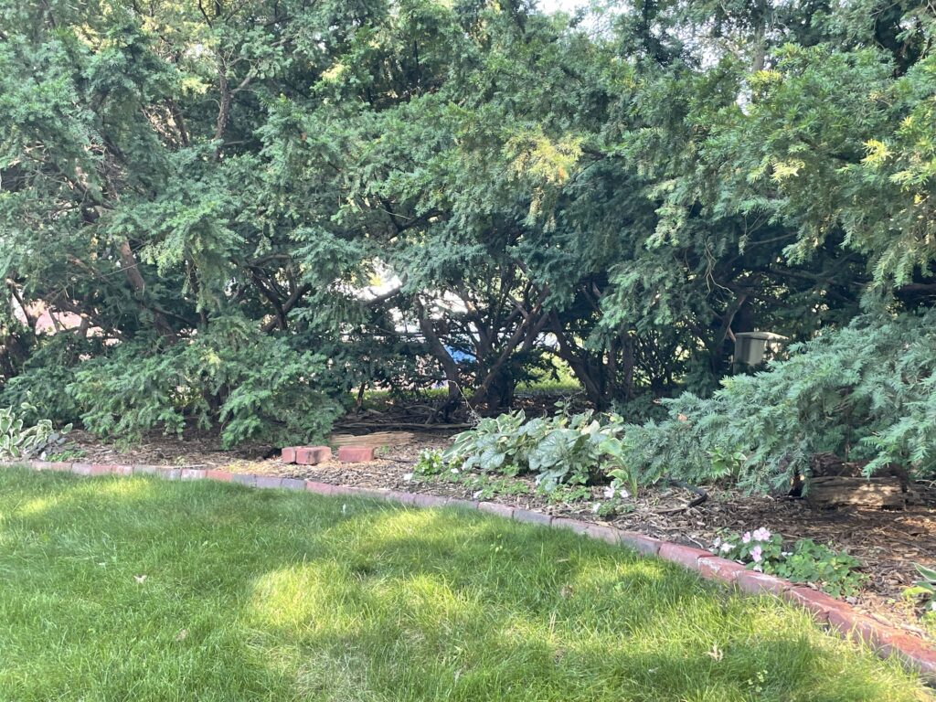 The next day I checked out their progress. Impressive work I’d say for five and seven-year-olds. Good job. I also checked my new Hosta garden at the entrance to the ‘cavern’. Yes, I made a new garden on the edge of the hedge last year. I extended it this spring. What can I say? It’s pretty.
